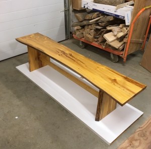 live edge tamarack slab bench