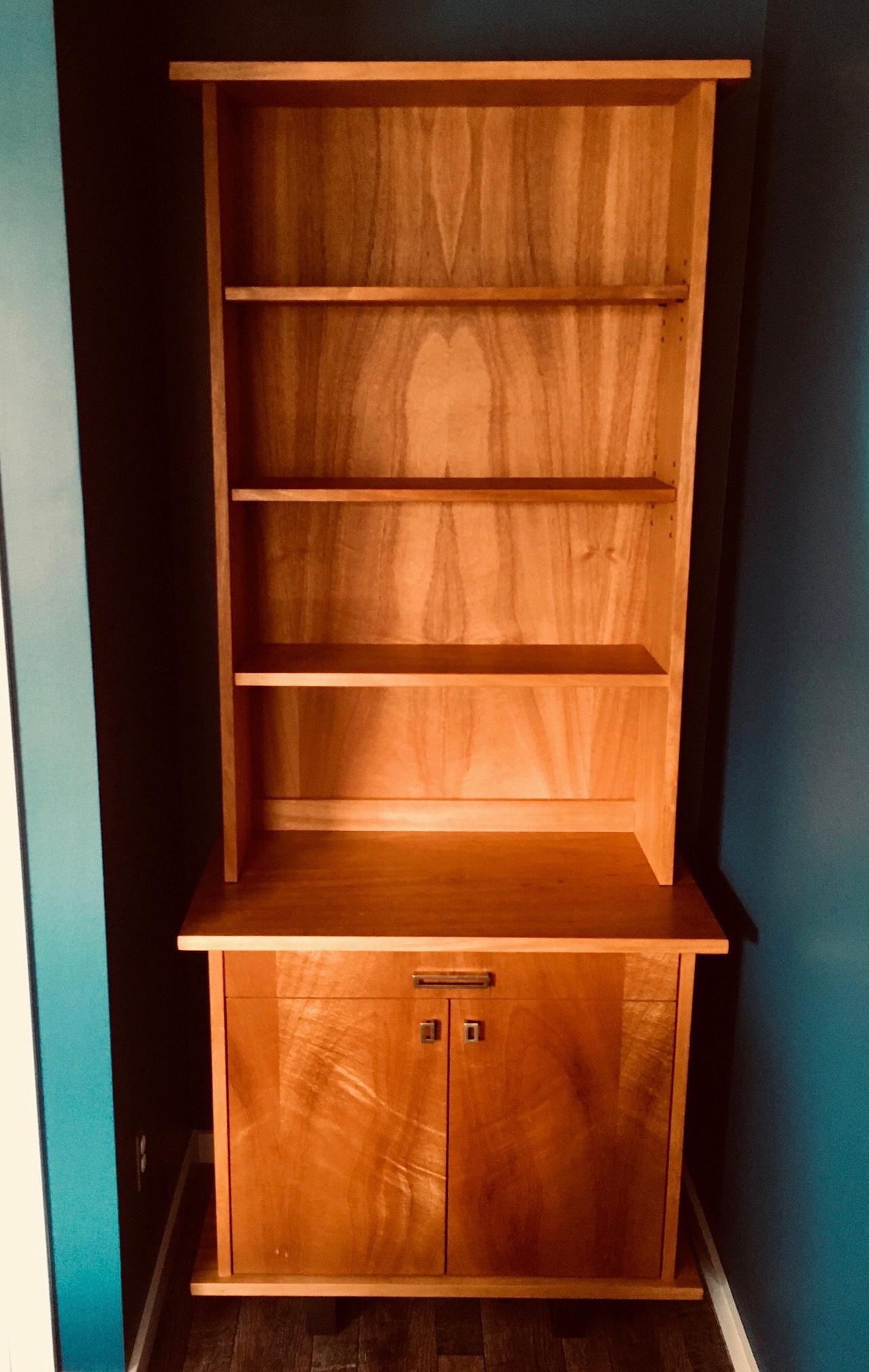 custom cabinet with bookshelf 70’s inspired cabinet with bookshelf in Honduras mahogany veneers Like Loading...